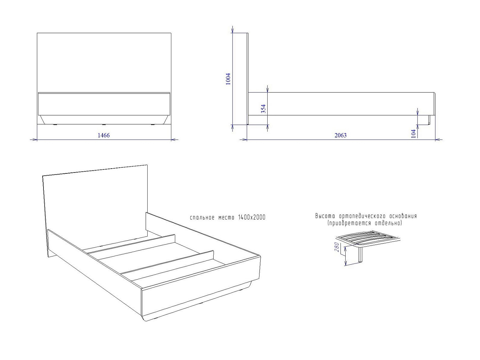 Спальное место: 1400*2000 мм
