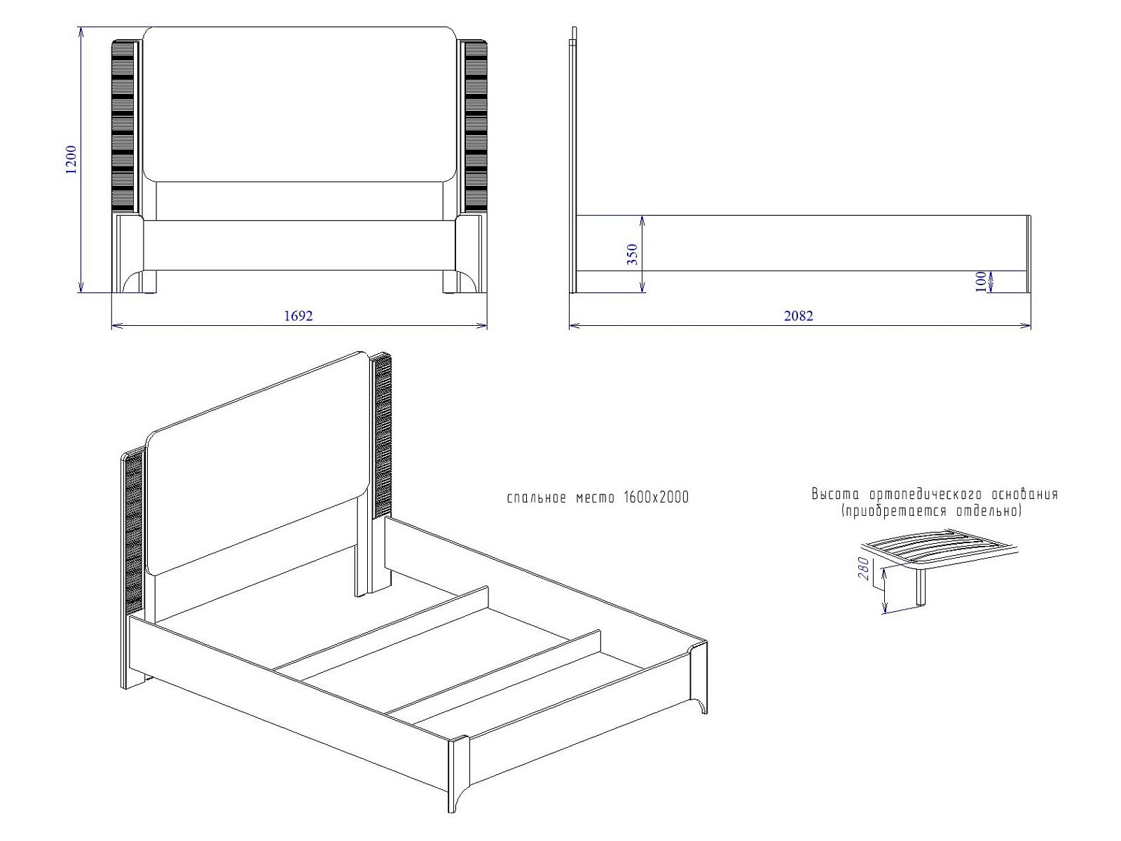 Спальное место: 1600*2000 мм