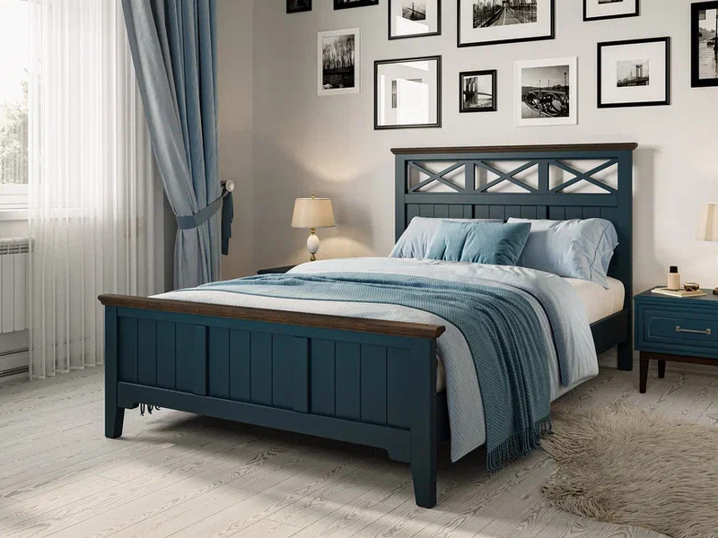 - Кровать Грация-5 1400 Сапфировый с карнизом Дуб коньяк