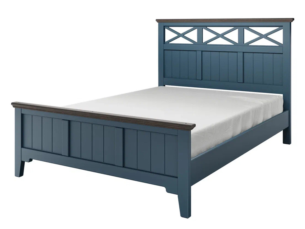 - Кровать Грация-5 1600 Сапфировый с карнизом Дуб коньяк