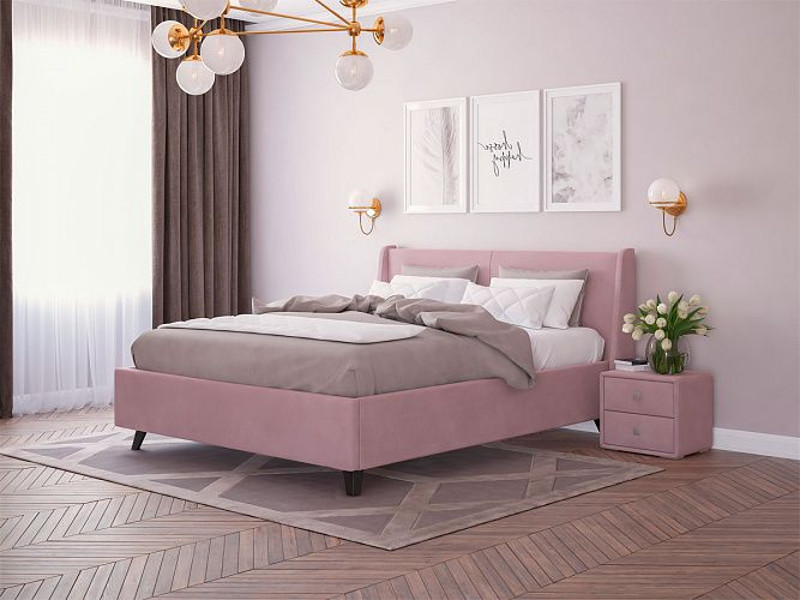 - Кровать Лорен с ПМ 1400х2000 мм микровелюр розовый