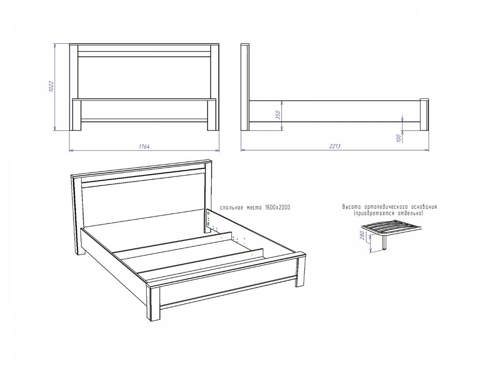 - Кровать Люкс 1600 Денвер без основания Риббек серый