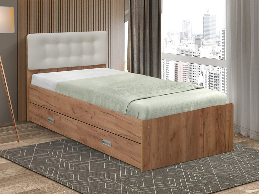 - Кровать одинарная №6 с ящиками 800х2000 с мягкой спинкой