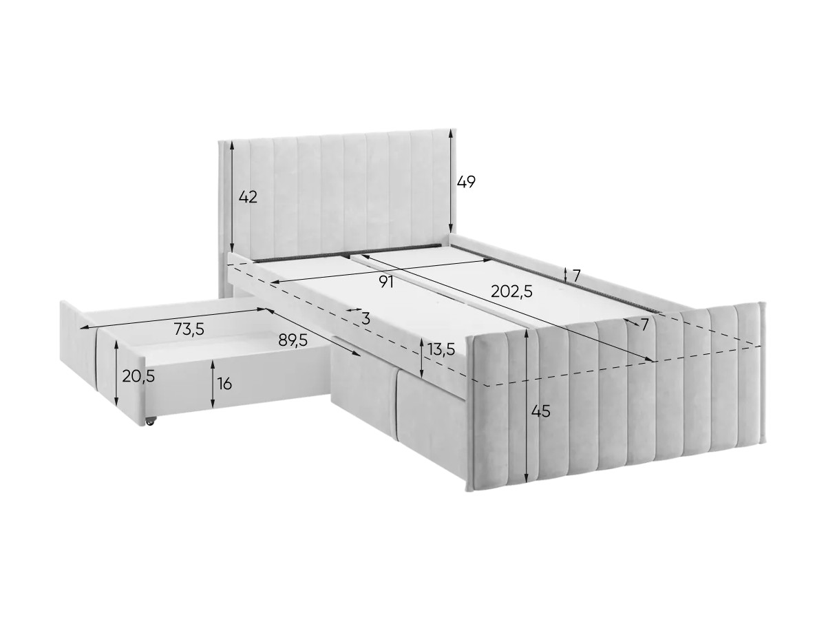 - Кровать с ящиками Твикс цвет велюра галька