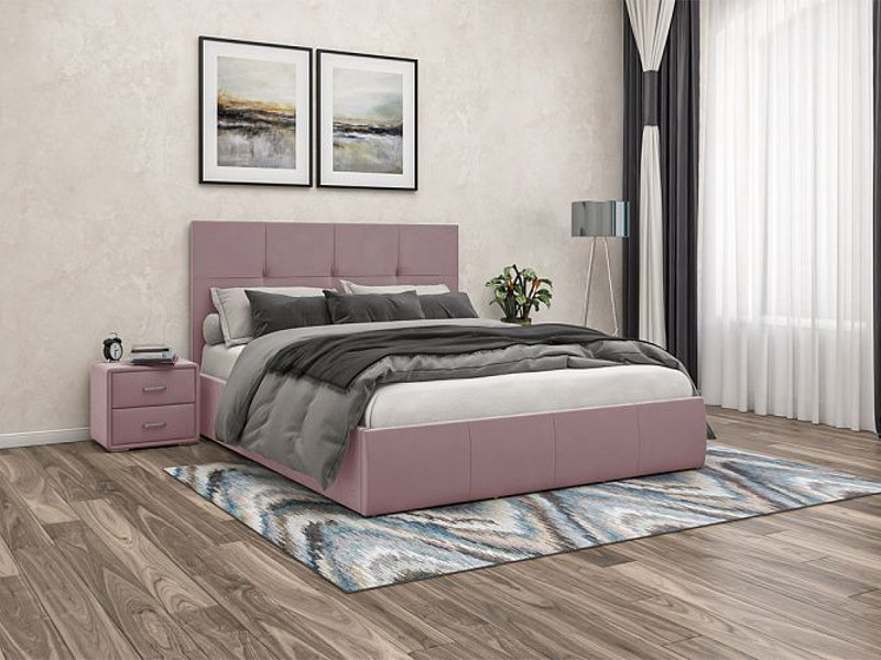- Кровать Твист с ПМ 1400х2000 мм микровелюр розовый