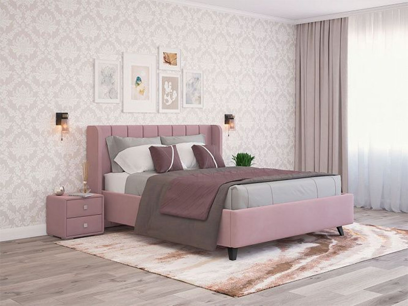- Кровать Виола с ПМ 1600х2000 мм микровелюр розовый