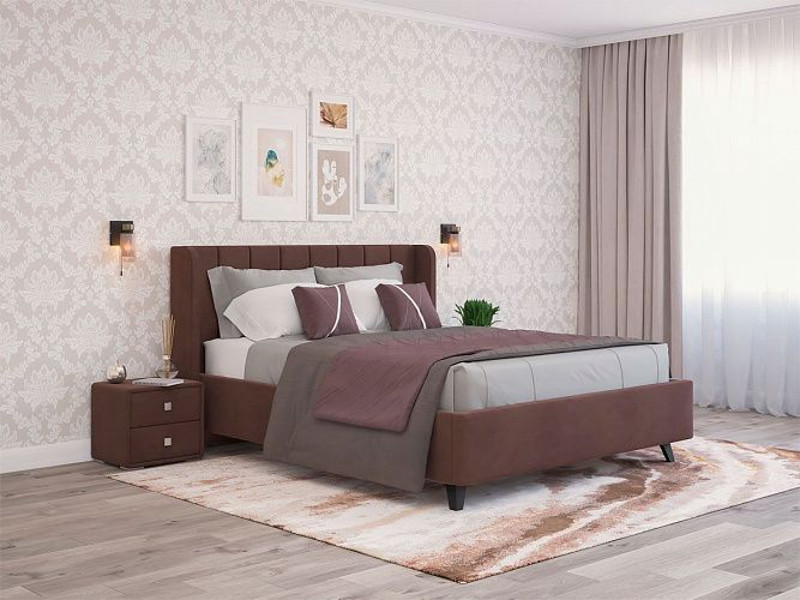 - Кровать Виола с ПМ 1800х2000 мм микровелюр шоколад