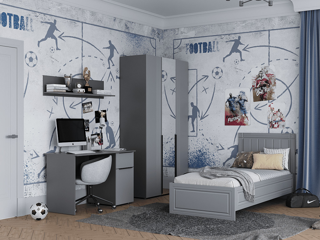 - Кровать Вита 900 тёмно серый лофт с настилом