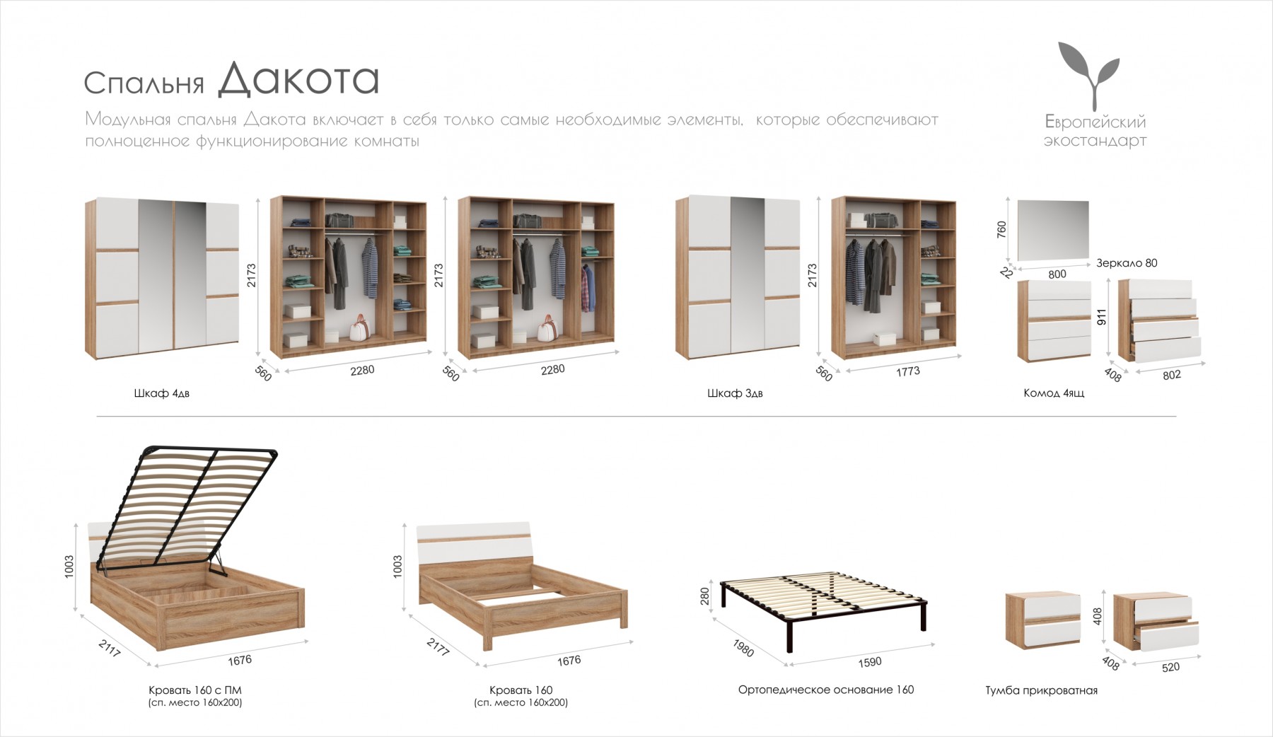 Спальня модульная, комплектуется по вашему выбору. Цена указана за комплект на главном фото - шкаф 4 дверный, комод, кровать 160 без основания, тумба прикроватная