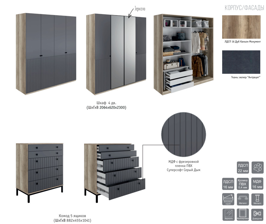 Цвет: дуб каньон/серый дым