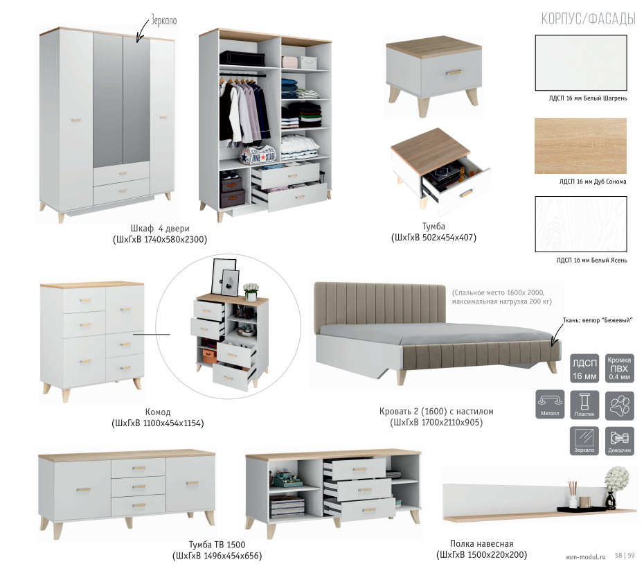 Цена указана за комплектацию на фото: Комод, Кровать, Тумба