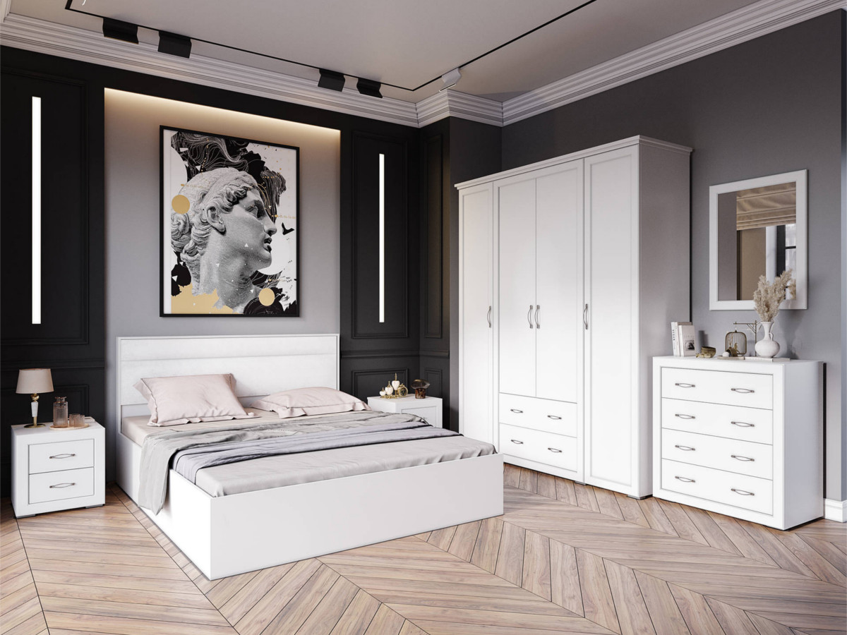 Цена за комплект: Зеркало, Комод, Тумба (2 шт), Шкаф, Кровать 1400, Основание ортопедическое