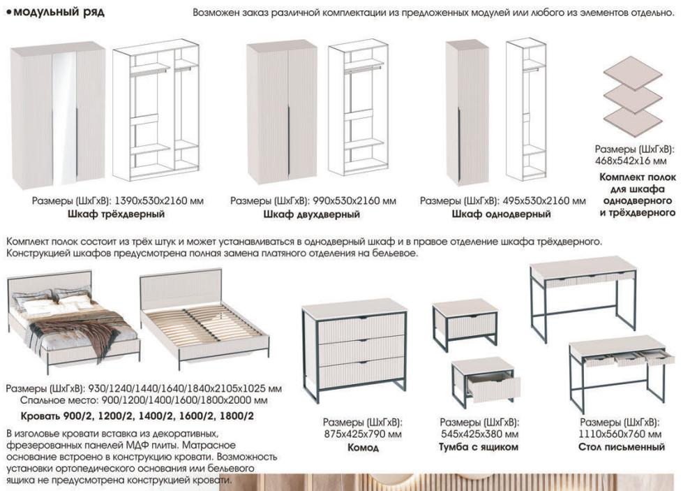Цена за комплект: Комод, Кровать 1600, Тумба, Шкаф 3 дверный