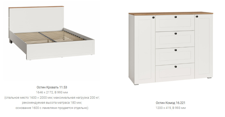 Цена за комплект: Кровать 11.53, Тумба прикроватная 16.152 (2 шт)
