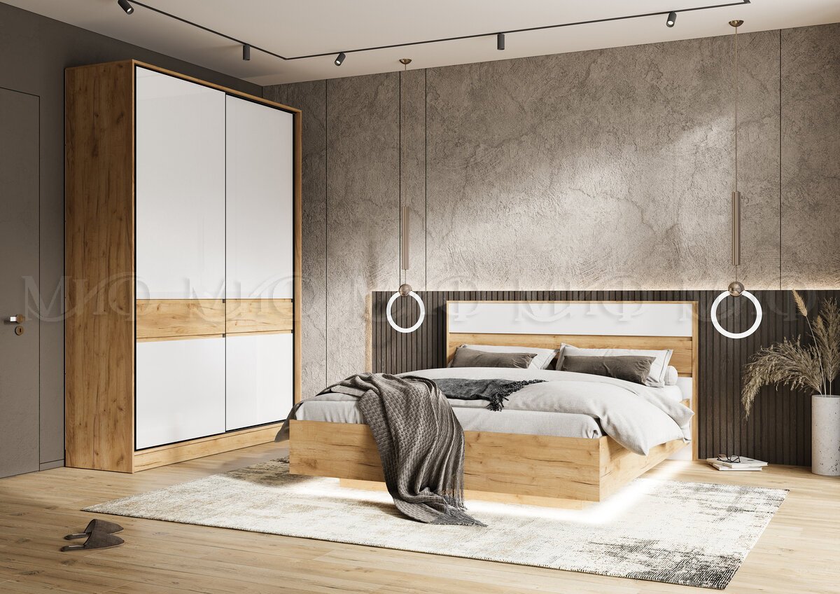 - Спальня Роджина Дуб крафт/Белый глянец