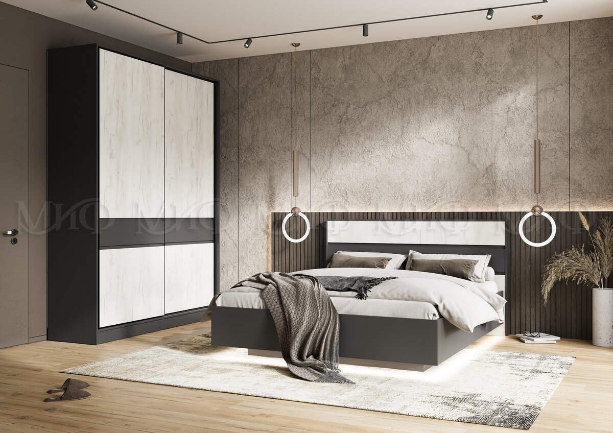 Спальня Роджина Графит/Дуб Крафт Белый
