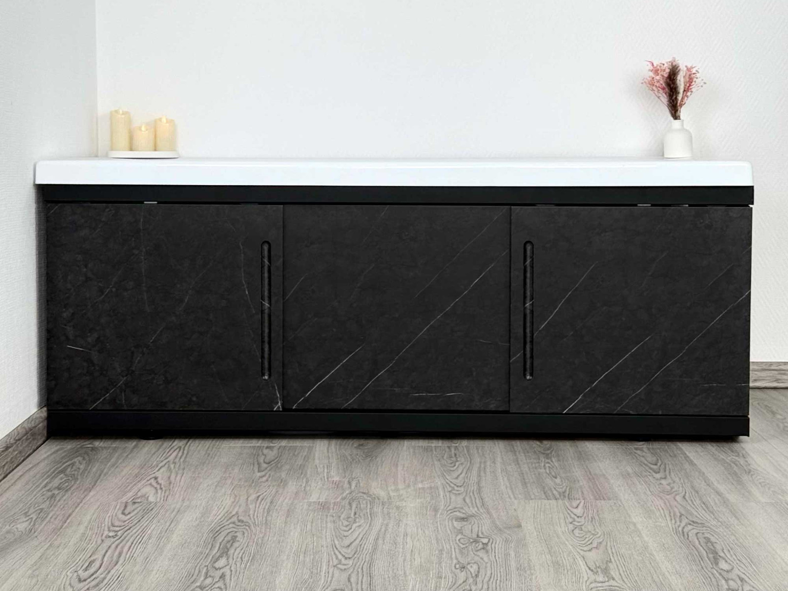 - Экран под ванну МДФ Alt Black 1500 мм черный мрамор