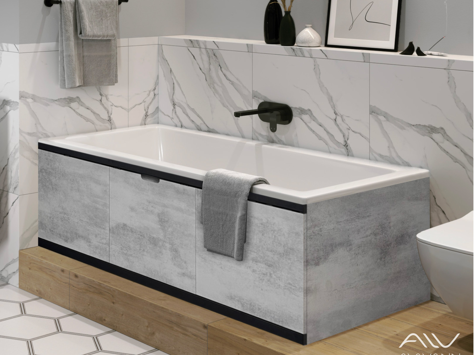 - Экран под ванну МДФ Rita Black 1800 мм серый бетон
