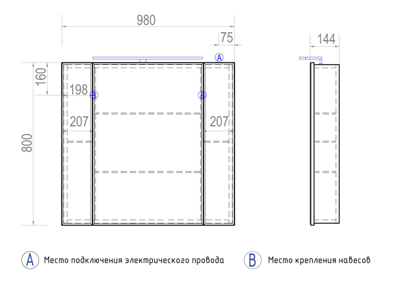 - Шкаф навесной с зеркалом Plaza 1000 со светильником