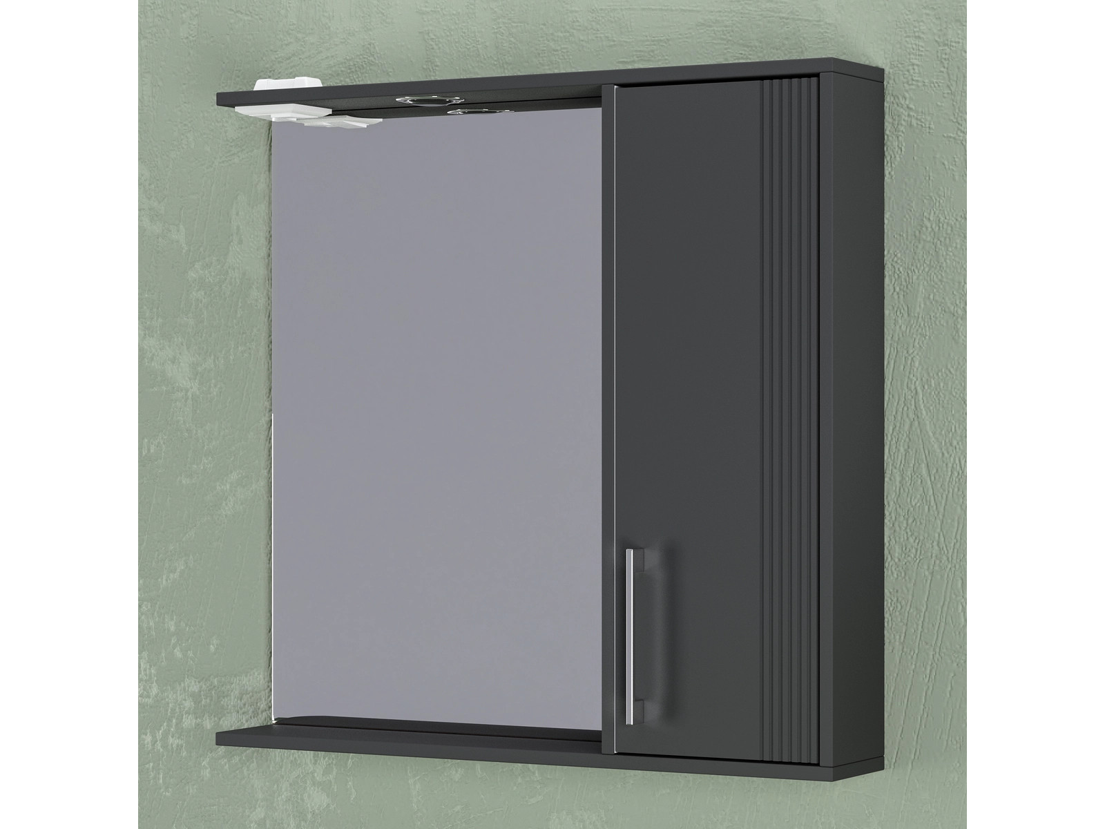 - Шкаф-зеркало Альба 70 со светильником правый антрацит