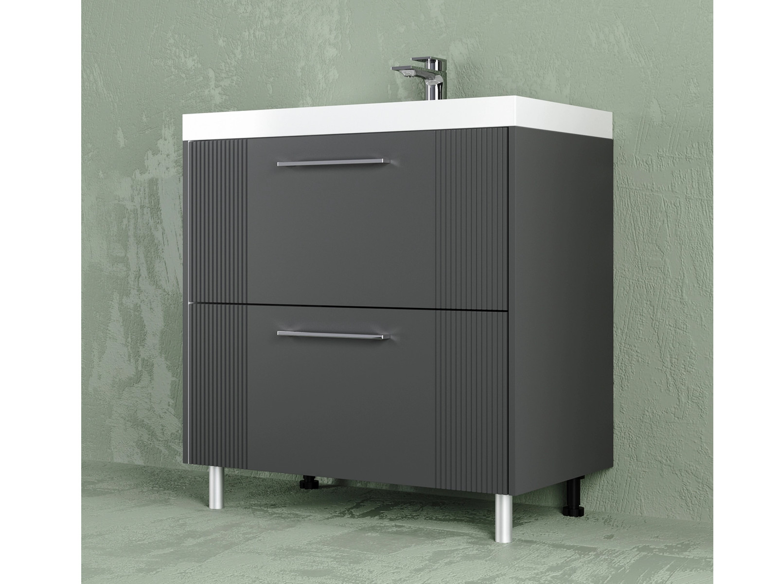 Тумба Альба 80 напольная 2 ящика Комфорт 80 антрацит