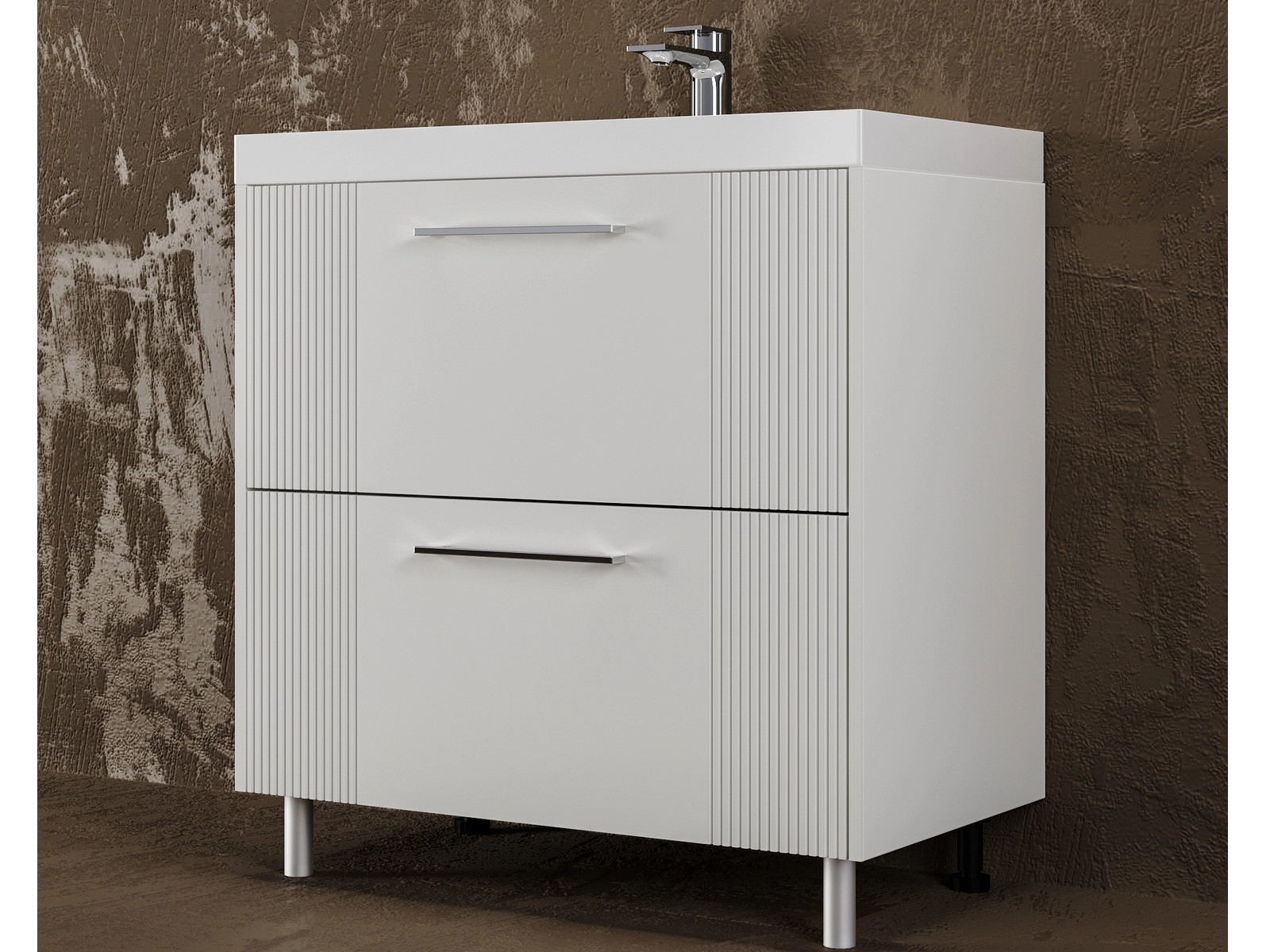 - Тумба Альба 80 напольная 2 ящика Комфорт 80 суфле