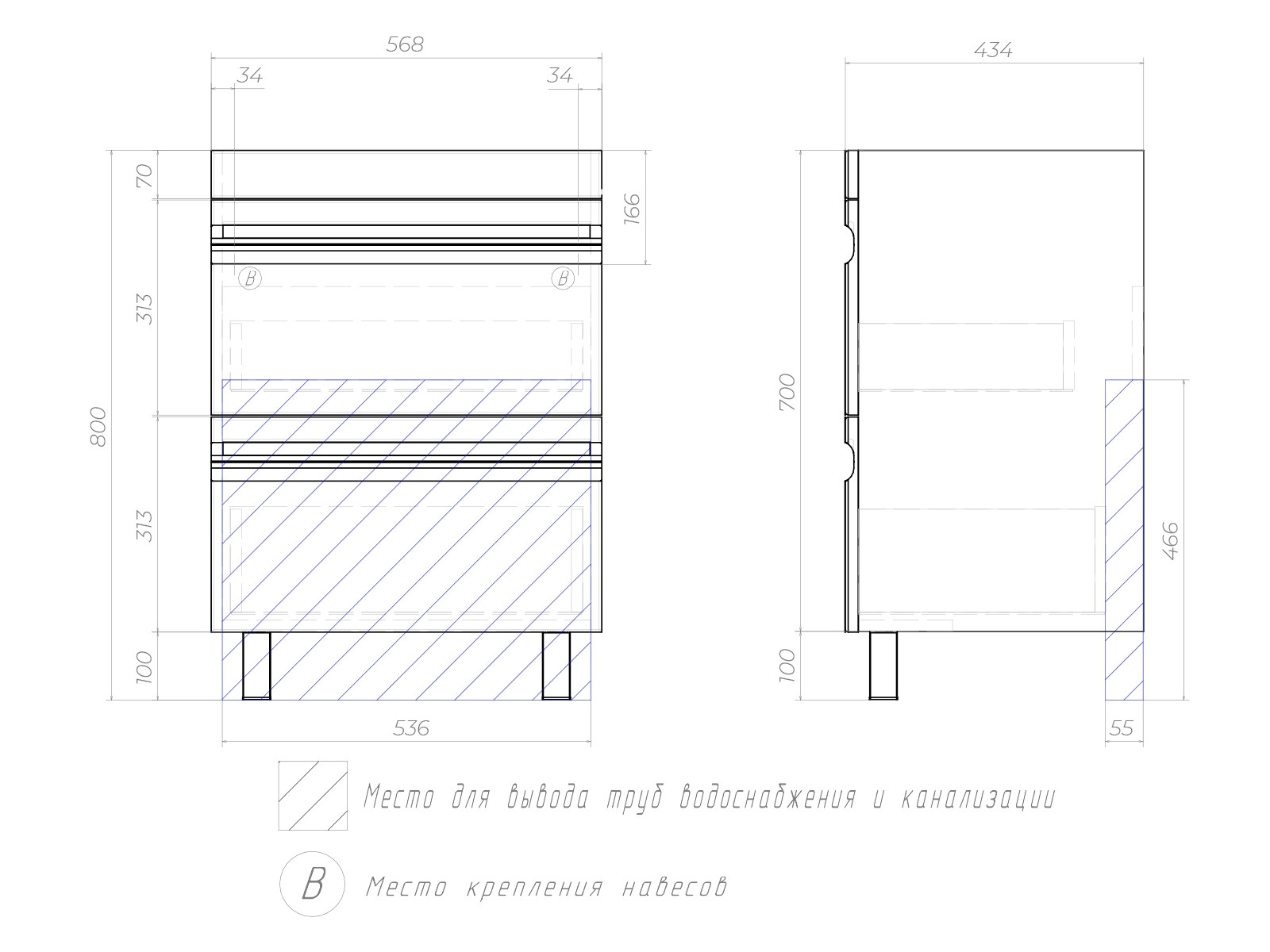 • Тумба под раковину Holly 600-0-2 (Фостер) напольная/подвесная