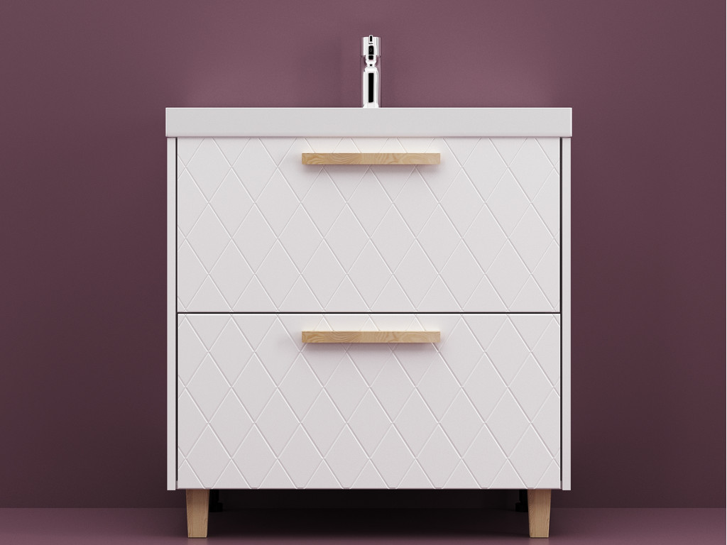 - Тумба Кристалл 80 напольная 2 ящика ручка дуб, раковина Слим 80 Суфле