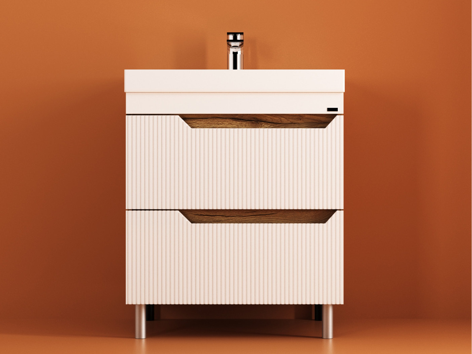 - Тумба Леон Риф 80 напольная 2 ящика раковина Слим 80 солярис/белый риф