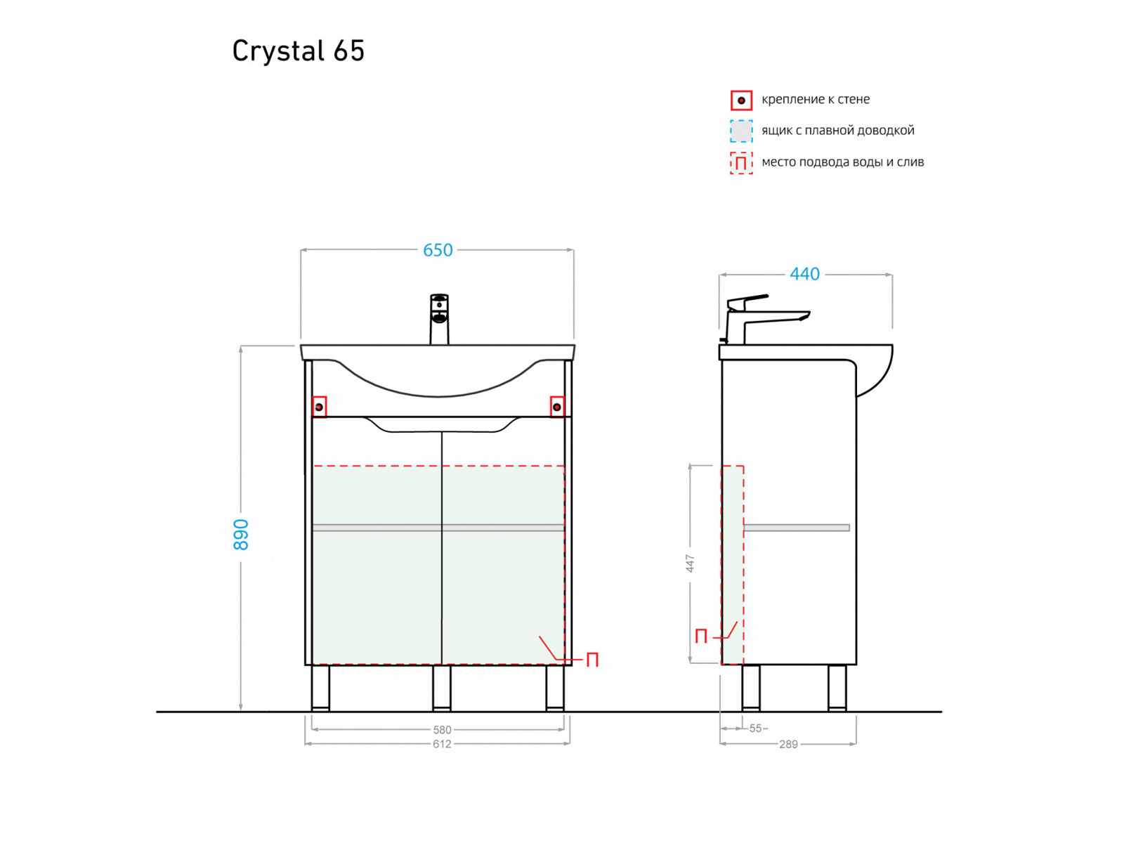 - Тумба с раковиной Crystal 65 белая