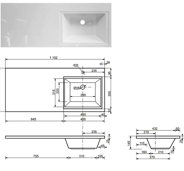 - Тумба с раковиной Dallas Luxe 1100 напольная 2 ящика правая