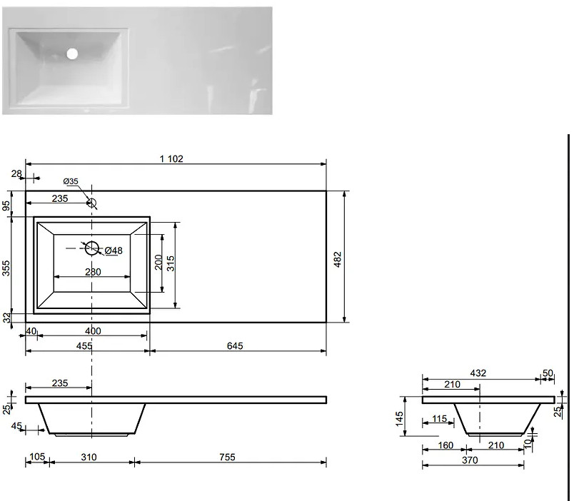 - Тумба с раковиной Dallas Luxe 1100 навесная 2 ящика левая