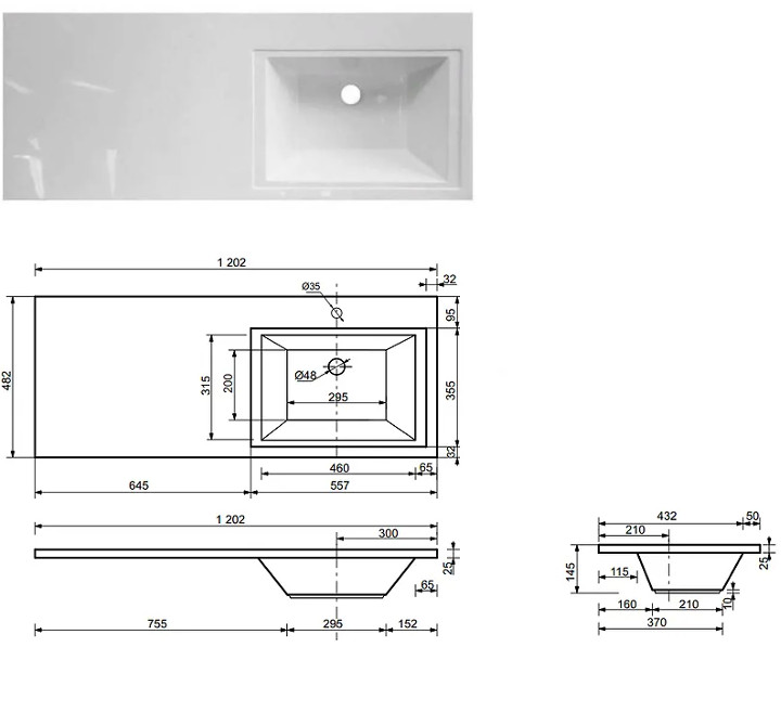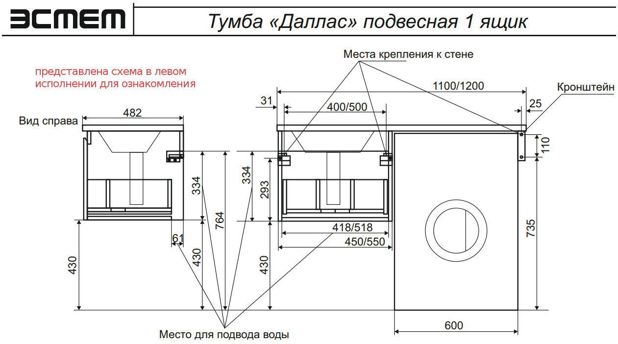 - Тумба с раковиной Dallas Luxe 1200 навесная 1 ящик правая