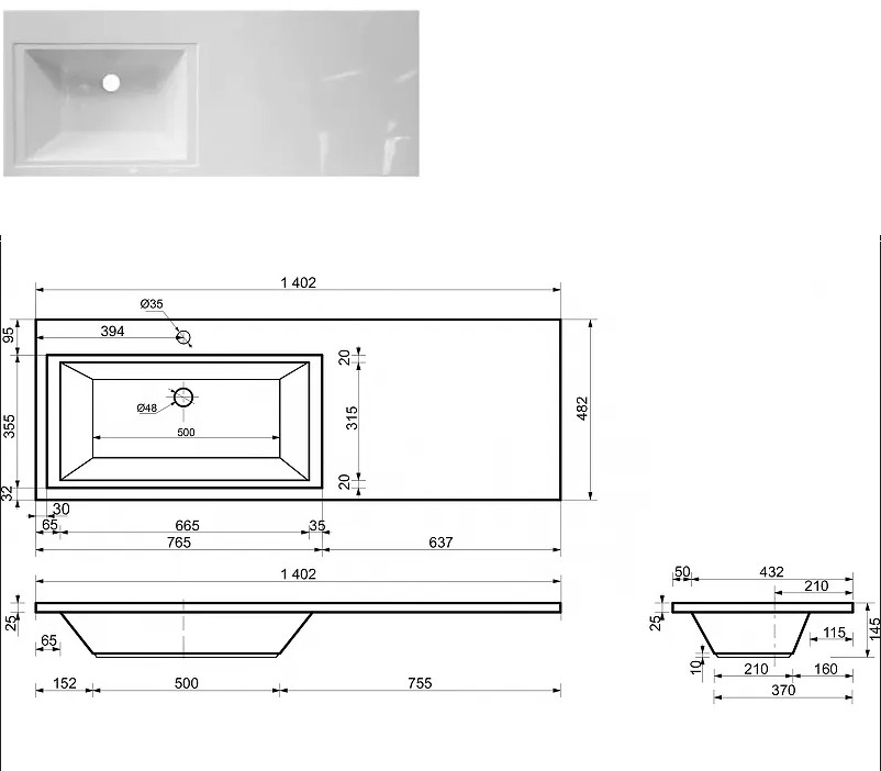 - Тумба с раковиной Dallas Luxe 1400 навесная 2 ящика левая