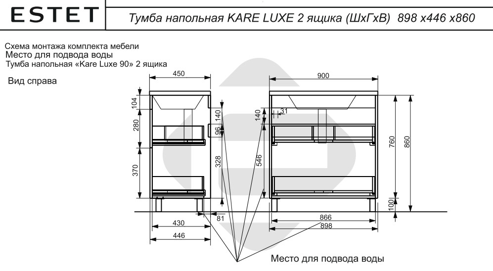Тумба с раковиной Kare Luxe 900 напольная 2 ящика