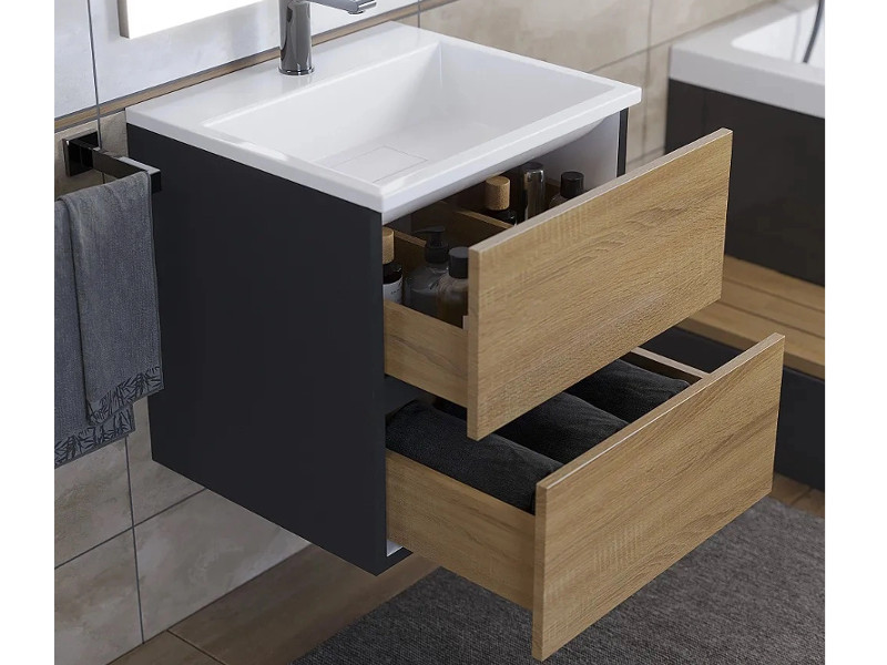 Тумба с раковиной Uperwood Barsa 50 см раковина белая-тумба черная/дуб сонома