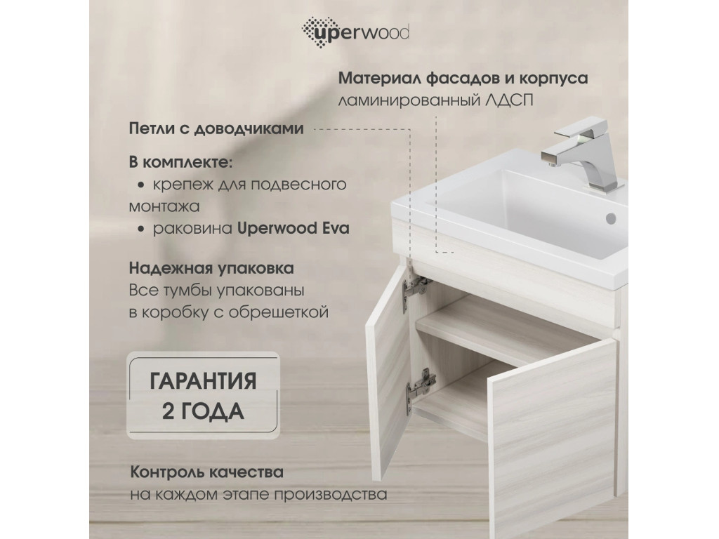 - Тумба с раковиной Uperwood Eva Дуб Харбор белый 50 см