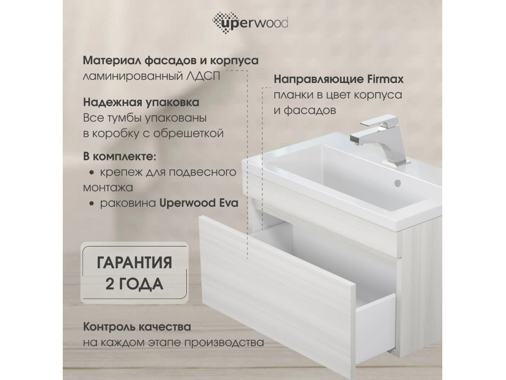 - Тумба с раковиной Uperwood Eva Дуб Харбор белый 75 см