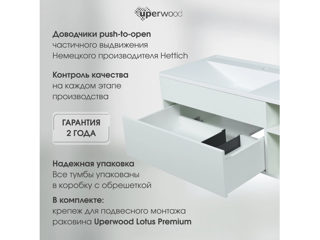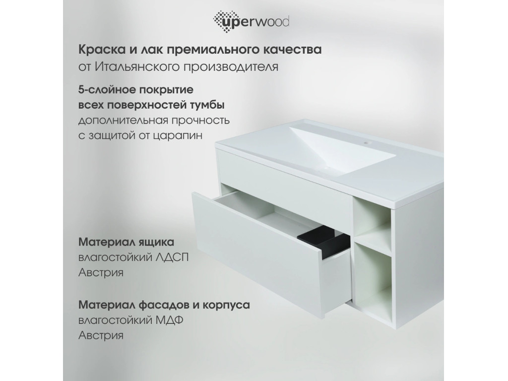 - Тумба с раковиной Uperwood Lotus Premium белая 100 см