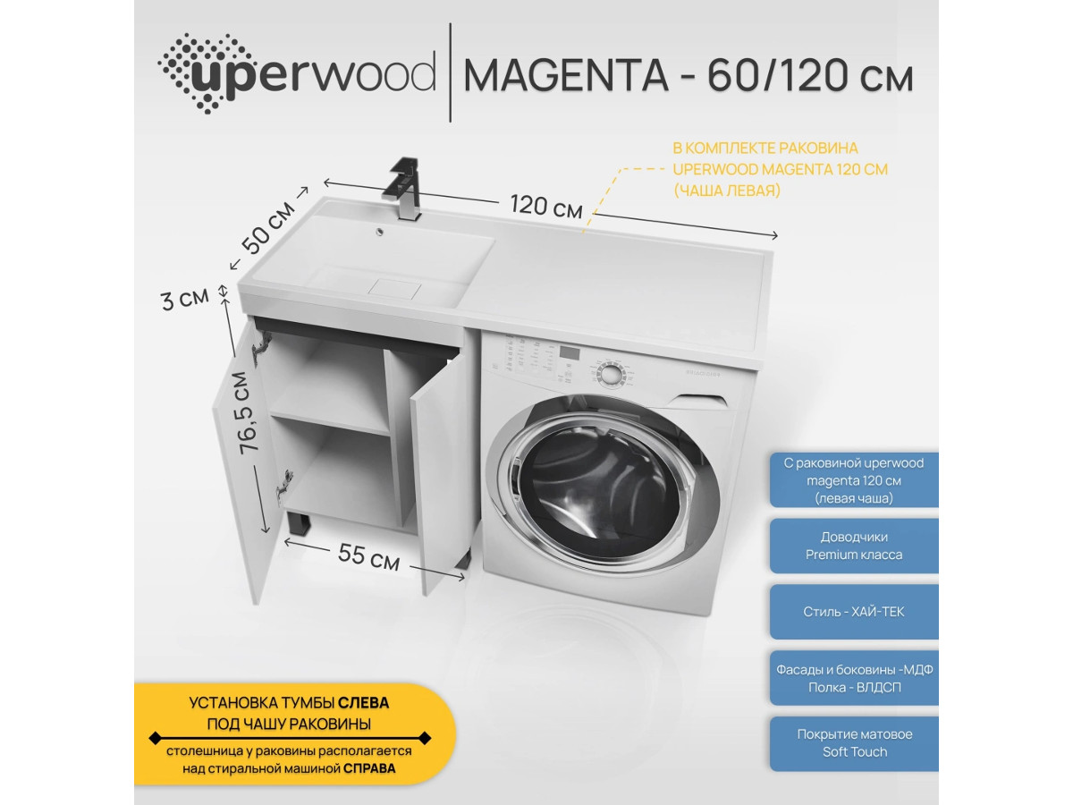 - Тумба с раковиной Uperwood Magenta 60-120 см напольная белая/графит с дверцами левая