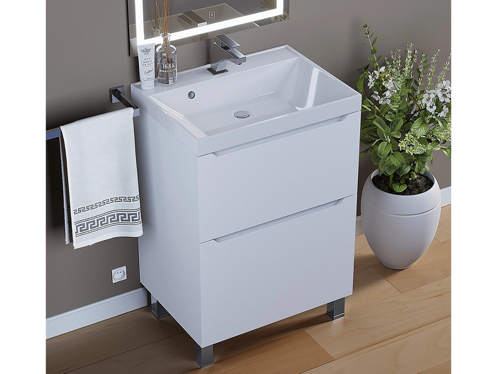 - Тумба с раковиной Uperwood Tanos 2 ящика напольная 60 см белая