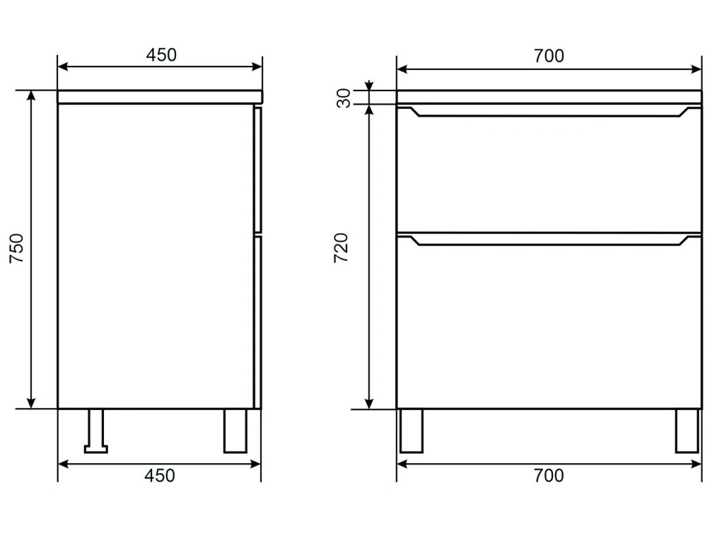 - Тумба с раковиной Uperwood Tanos 2 ящика напольная 70 см белая