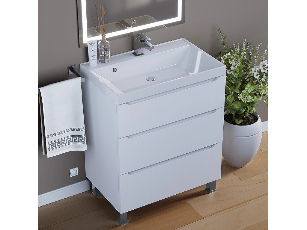 - Тумба с раковиной Uperwood Tanos 3 ящика напольная 70 см белая