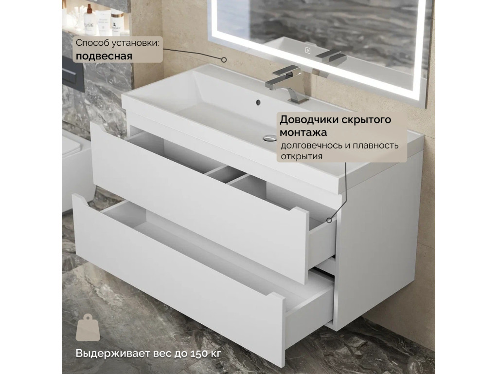 Тумба с раковиной Uperwood Tanos матовая белая 100 см