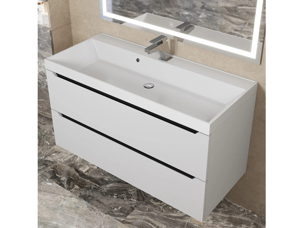 - Тумба с раковиной Uperwood Tanos матовая белая/графит 100 см
