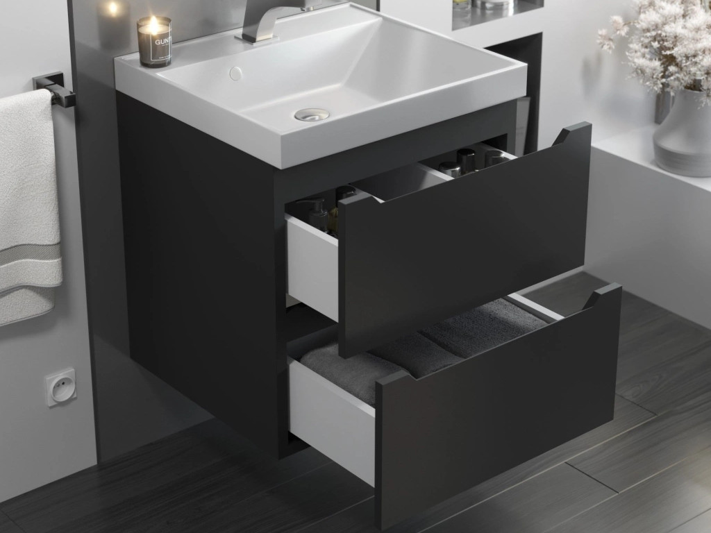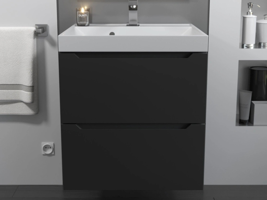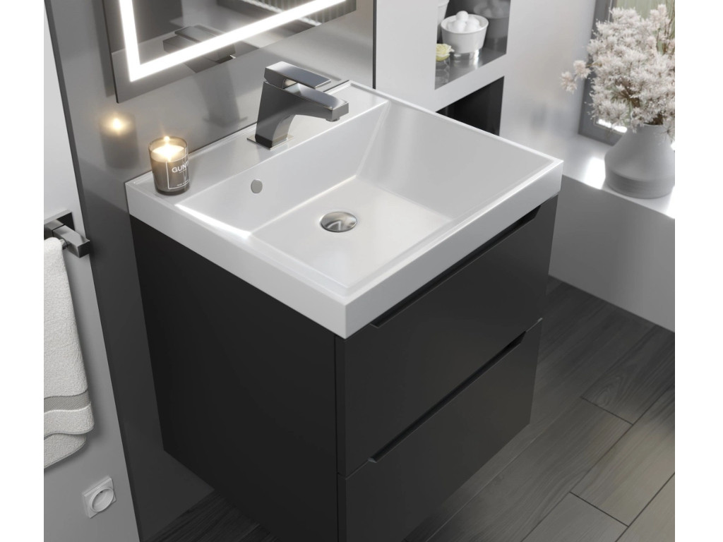 - Тумба с раковиной Uperwood Tanos матовая черная 50 см