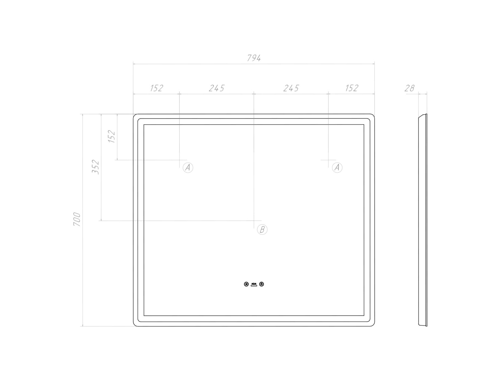 Подсветка фронтальная по периметру, с цветовой температурой 5000К – нейтральный белый, управление подсветкой сенсорное/датчик присутствия (1.5 м.)