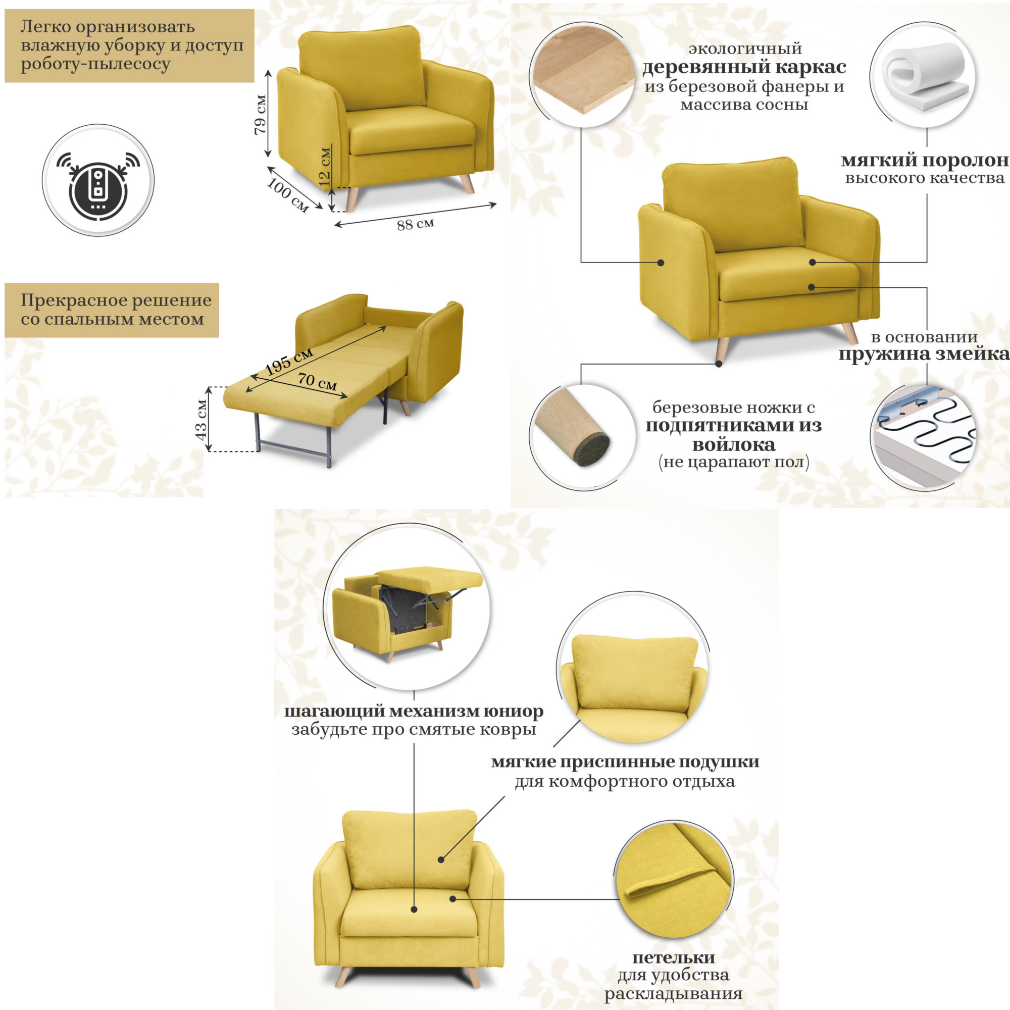 - Спальное место: 700х1950 мм
