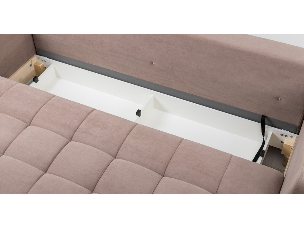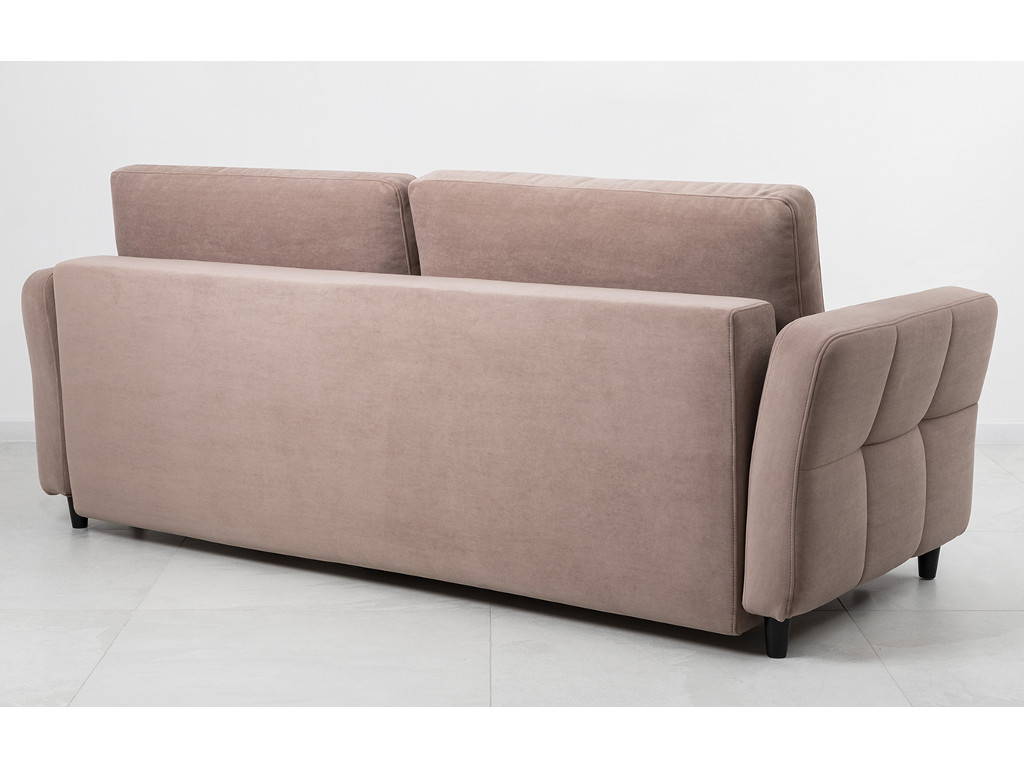 Ровная отстрочка по всему периметру сидения и стежка? создающая эффект пышности выделенных форм. Подлокотники прямые с изгибом в наружные стороны, с выраженной стежкой по лицевой стороне. Стежка на посадочной части дивана.