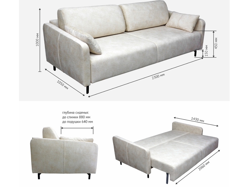 Габариты (длина*глубина*высота): 2280*1050*1000 мм